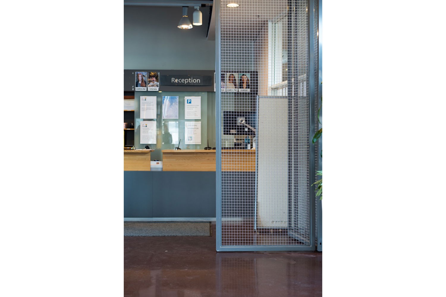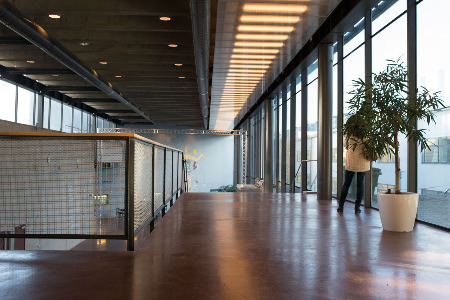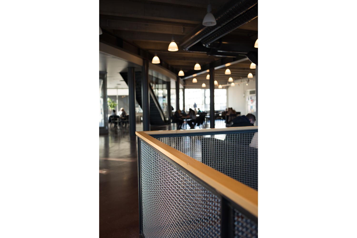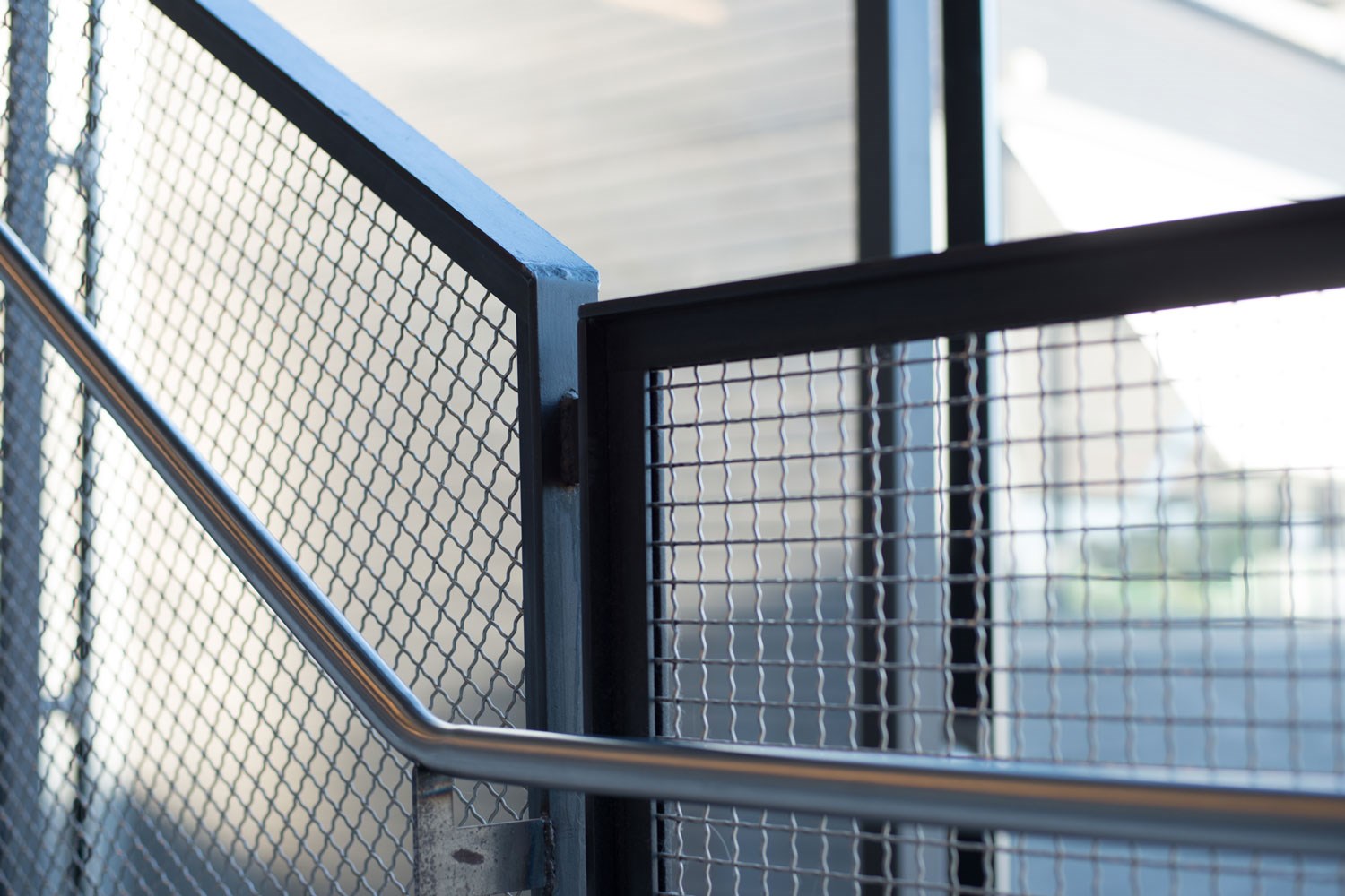 Trappräcke med krenelerat galler är också snygg att titta på. En kombination av säkerhet och skönhet. Ett beständigt och stiligt räckesystem med hög insynsskyddsfaktor. Detta trappräcke av krenelerat galler sitter i Södertörn högskola i Huddinge.