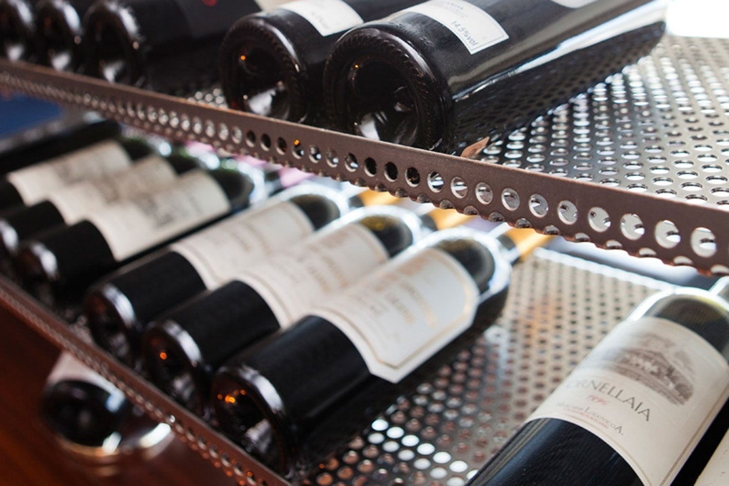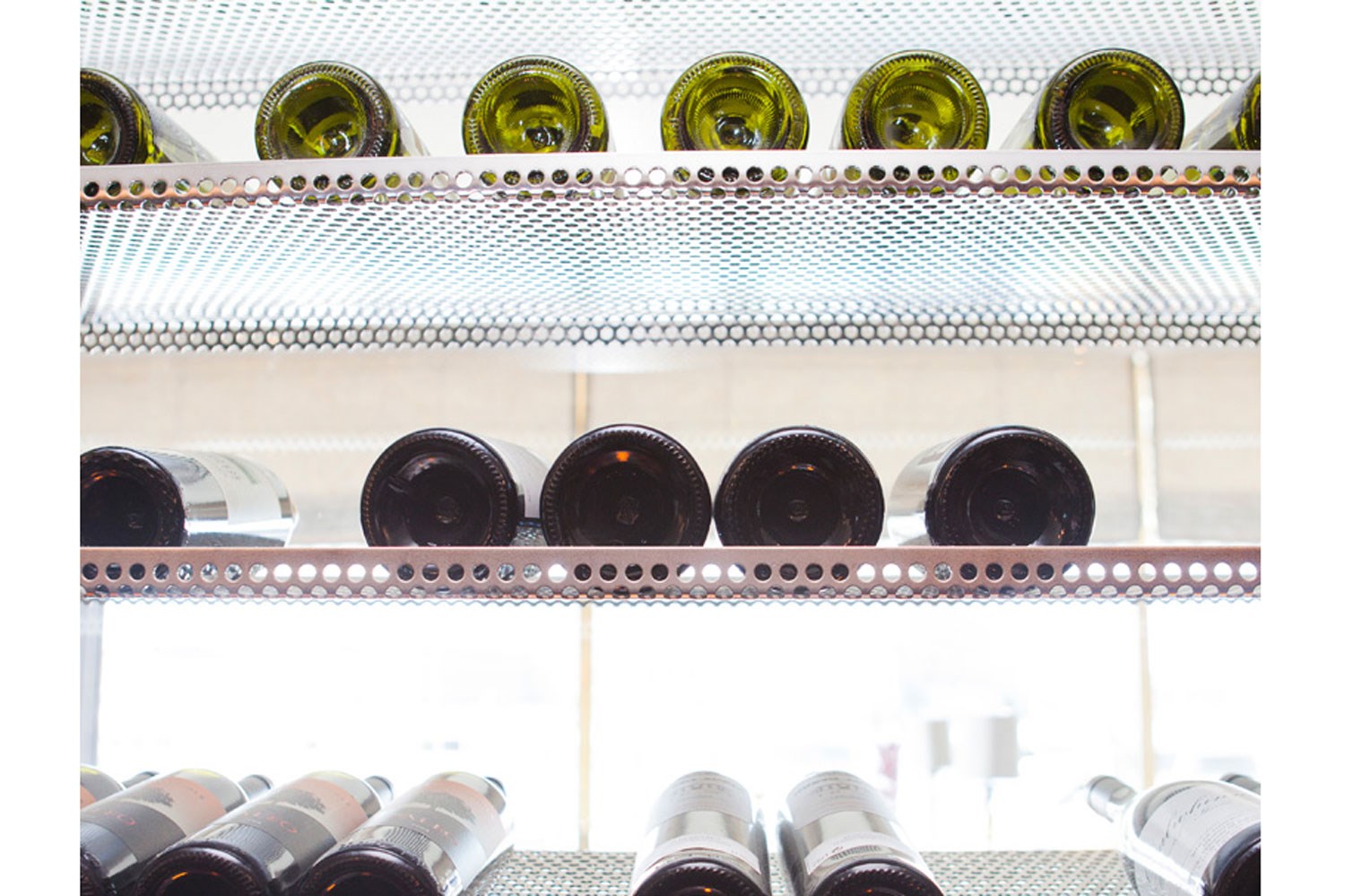 Användningsmöjligheterna för perforerad plåt är lika många och varierade som alla de hålformer man kan åstadkomma i materialet. Olika hålmönster och material låter kreativiteten få ännu friare spelrum – så oavsett hur tokiga kundens önskemål kan verka kan du förverkliga dem snabbt och enkelt. Denna kreativa och snygga hylla har vår kund använt perforerad plåt som vinhållare i en restaurang.